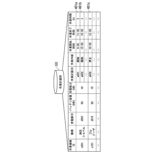 蓄電池を備えた作業機械が行う作業内容と、当該作業内容が行われる作業時間と、を含む作業計画を取得する計画取得部、