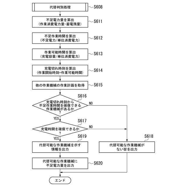 前記蓄電残量が前記作業消費電力量に対して不足する場合、他の作業機械の作業計画に基づいて、不足分の作業を行う他の作業機械を特定する作業機械特定部と、
