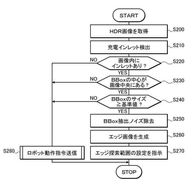 しかしながら、3Dデータを得るための3Dセンサ(3Dカメラ)は高価であり、その使用環境は、光の影響を受けにくい室内等に限定されてしまう。また、ニューラルネットワークを利用して充電インレットの位置姿勢を取得する場合、大量の学習データや計算時間が必要となり、当該ニューラルネットワークの構築コストを低下させるのは容易ではない。更に、非特許文献1に記載された技術では、自動露光で撮影された2D画像から陰影の差が大きい画像輪郭情報を取得することが容易ではなく、楕円の使用に起因してPnPアルゴリズムを用いた姿勢の取得に際して特徴位置にズレを生じるおそれがある。