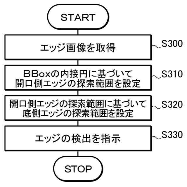 前記エッジ検出部は、前記開口側エッジおよび前記底側エッジをそれぞれに対応した前記探索範囲から検出し、