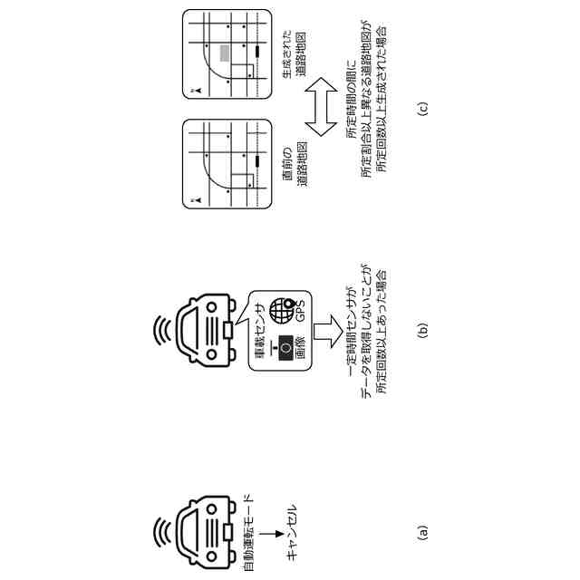 前記車両のユーザが自動運転モードをキャンセルした場合、第1の時間の間に前記センサが前記データを所定数以上取得しないことが第1の回数以上あった場合、または、直前に生成された道路地図と所定割合以上異なる道路地図が第2の時間の間に第2の回数以上生成された場合に、前記エラーを検知したと判定する、