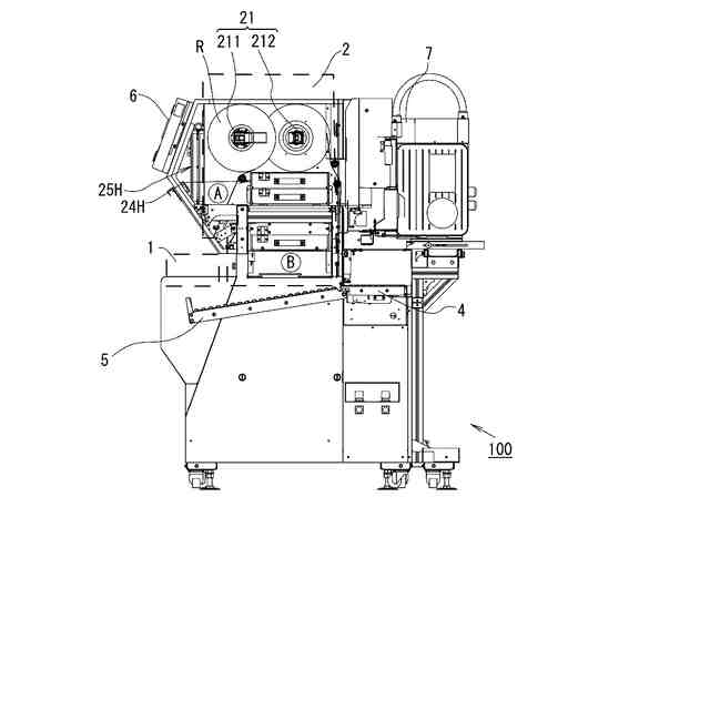 計量手段と包装手段の(機枠の一部を外した)右斜視図である。