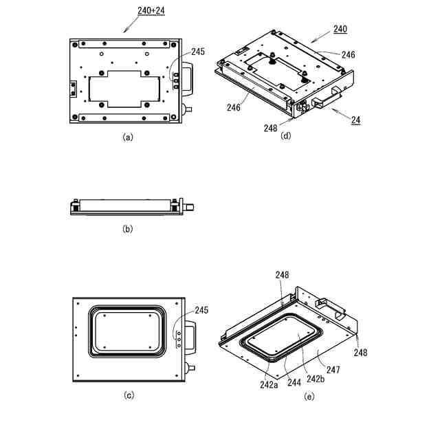 上抜型から、運搬時把持部分を外し、さらに、金属板及び周囲底板を省いて描いた図であって、図10(a)は上面図、図10(b)は正面図、図10(c)は底面図、図10(d)は上方斜視図、図10(e)は下方斜視図である。