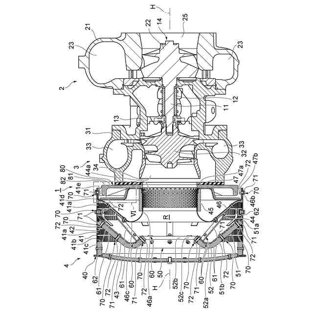 前記バッフル板の前記外端部から前記筒状部の基端部に形成されている開口までの前記回転軸線に沿う長さは、前記バッフル板の内端部から前記筒状部の基端部に形成されている開口までの前記回転軸線に沿う長さより短い、