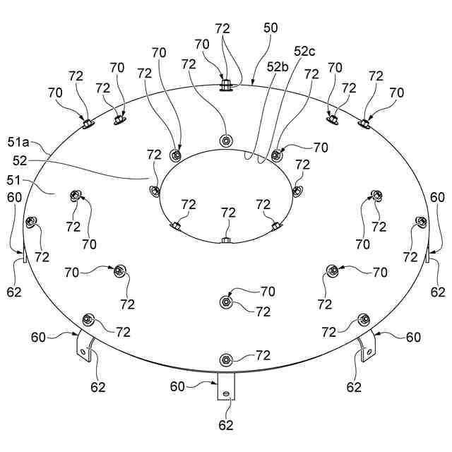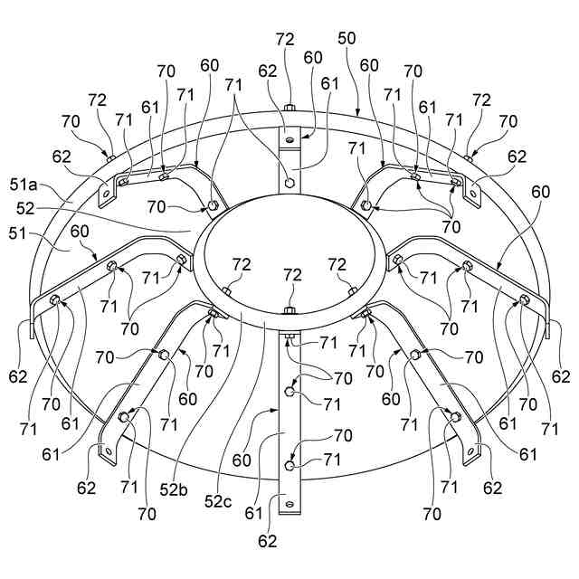 いくつかの態様において、バッフル板に固定され、バッフル板の少なくとも一部に沿って延在している第1部位と、筒状部の内面に固定され、内面に沿って延在している第2部位と、を有する板状部材を更に備え、第1部位の延在方向と、第2部位の延在方向とがなす基端側かつ回転軸線側の角度は、鈍角であってもよい。この場合、第1部位の延在方向と第2部位の延在方向との角度が直角である場合に比べて、第1部位と第2部位とが交わる部位に掛かる応力集中を低減することができる。これにより、板状部材の損傷を抑制することができる。