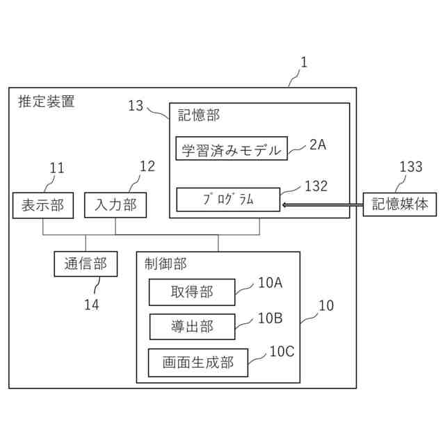 推定対象となる対象タイヤの接地面の接地圧分布と、前記対象タイヤの溝深さと、前記対象タイヤを構成するゴム部材の粘弾性とを含む入力データを学習済みの機械学習モデルに入力し、前記学習済みの機械学習モデルから出力データを導出する導出部