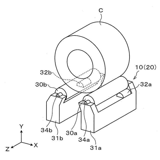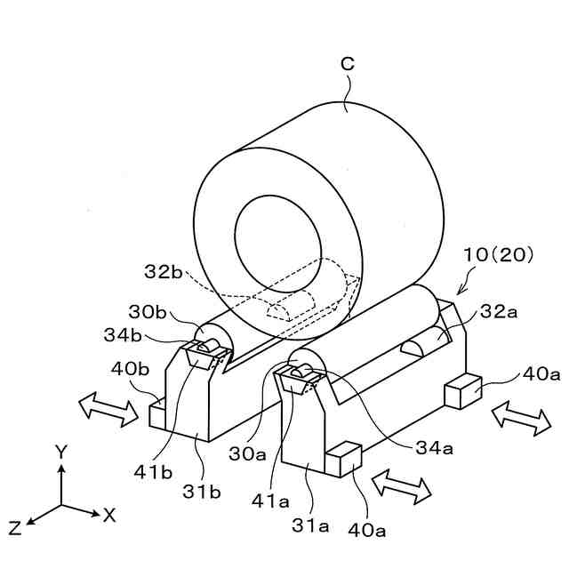 かかる場合、コイルの回転によって、コイルとクレードルロールのスキュー(微小クロス)が生じる場合がある。そうすると、このスキューによるスラスト力でコイルが軸方向に移動する。コイルが移動してクレードルロール上でコイルずれが発生すると、コイルをペイオフリールに挿入することが困難になる。さらには、クレードルロール上でコイルが倒れ、設備の損壊に至る可能性もある。