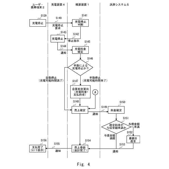 充電停止時までの前記充電積算情報に基づく充電料金と前記支払料金との合算料金を算出し、前記与信金額と前記合算料金とに基づいて精算処理を行う精算処理部と、