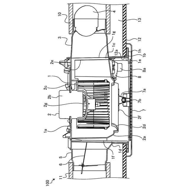 前記回転軸の回転に伴って回転可能であり、前記副吸込側ダクトと前記副吸込口との連通を許容する開位置と前記副吸込側ダクトと前記副吸込口との連通を遮断する閉位置とに回転するシャッタ本体と、