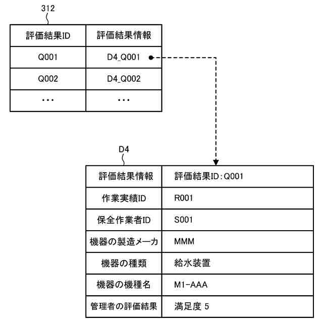 機器の保全作業者により保全作業が実施されたときの作業実績が記録された作業実績情報と、前記保全作業に対する前記機器の管理者の評価結果が記録された評価結果情報とをそれぞれ取得し、データベースに登録するデータベース管理部と、