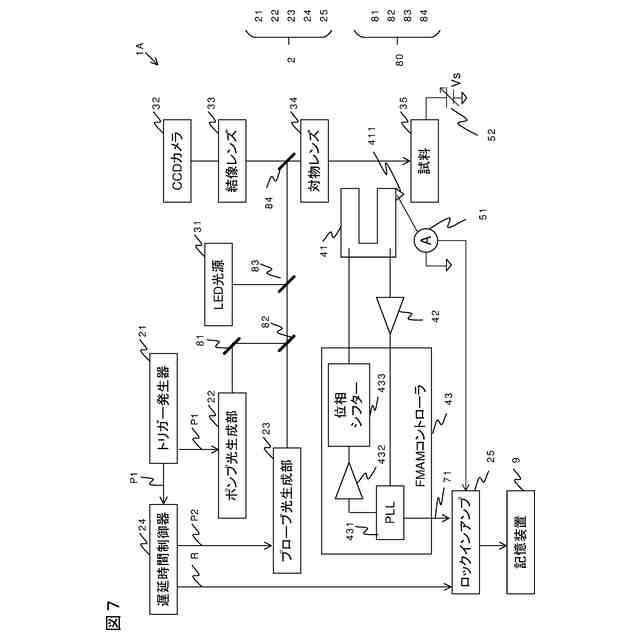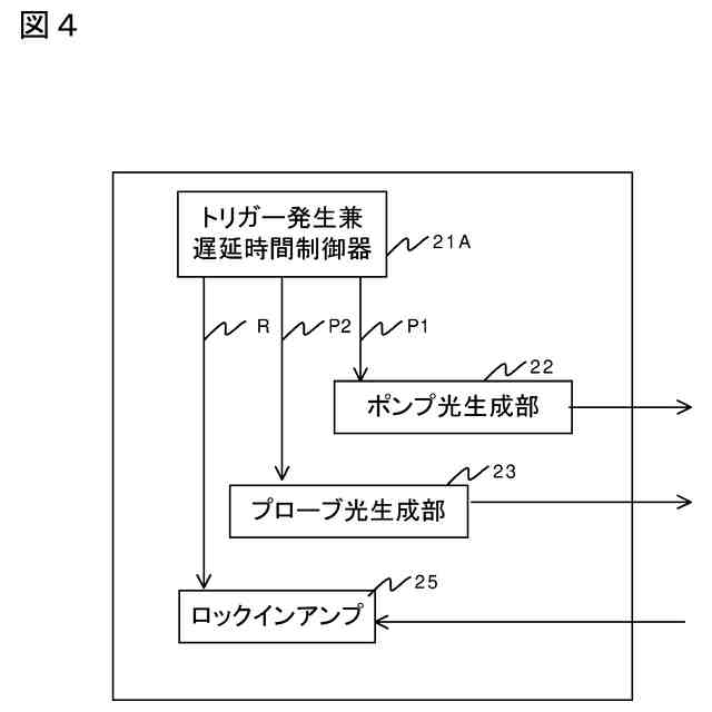 光源ユニット2は、トリガー発生器21と、ポンプ光生成部22と、プローブ光生成部23と、遅延時間制御器24と、ロックインアンプ25と、を備える。光源ユニット2は、たとえば遅延時間変調励起光源ユニット(株式会社ユニソク、OPP-PSまたはOPP-NS)である。以下では、ポンプ光生成部22を「第1レーザ」とも呼び、プローブ光生成部23を「第2レーザ」とも呼ぶ。