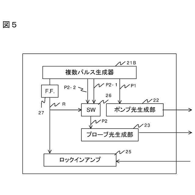 前記第1レーザおよび前記第2レーザに前記第1信号および前記第2信号を入力し、かつ、前記第1レーザに信号を入力するタイミングと前記第2レーザに信号を入力するタイミングとの差である可変ディレイ値を複数とおりに切り替えて前記第1信号および前記第2信号を繰り返し入力し、かつ前記可変ディレイ値を切り替える際にロックインアンプに対して参照信号を出力するトリガー発生兼遅延時間制御器と、