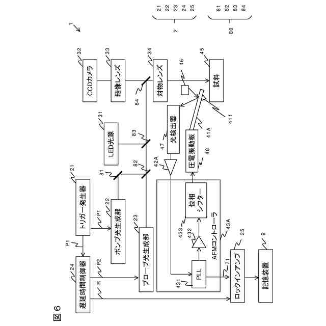 【解決手段】計測システムは、カンチレバーと、カンチレバーの共振周波数や振幅の変化に応じた電圧または電流である変化量信号を出力するAFMコントローラ43と、光源ユニットと、を備え、光源ユニットは、入力される基準パルスP1に応じてポンプ光を出力するポンプ光生成部22と、入力される遅延パルスP2に応じてプローブ光を出力するプローブ光生成部23と、ポンプ光生成部22およびプローブ光生成部23に基準パルスP1および遅延パルスP2を入力し、かつ、遅延時間tdを複数とおりに切り替えて信号を繰り返し入力し、かつ遅延時間tdを切り替える際にロックインアンプ25に対して参照信号を出力するトリガー発生兼遅延時間制御器と、を備える。