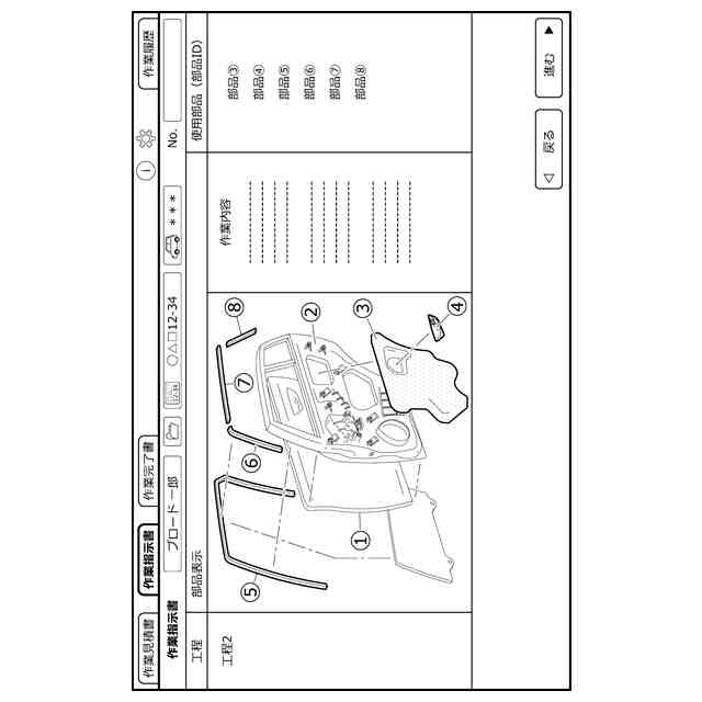 前記出力部は、前記部品特定部によって特定された部品を用いた修理、交換又は取り付け作業にかかる複数の作業工程の遷移に伴って、所定の作業工程で用いられる部品を、該所定の作業工程で用いられる部品とは異なる部品と比べて強調表示した画面を表示する、請求項5に記載の情報処理装置。