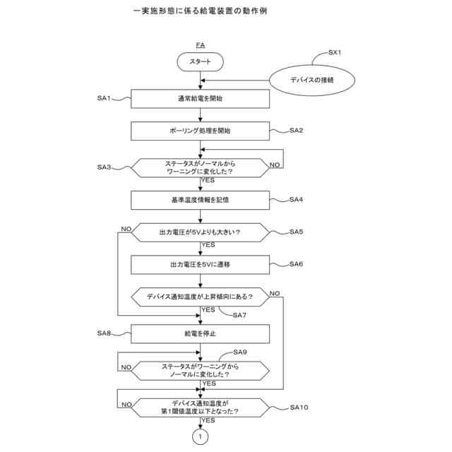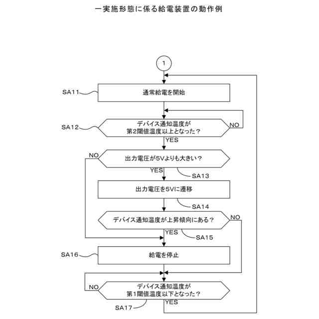 従来、デバイスを接続可能に構成され、接続されたデバイスに給電可能な給電装置が知られている。この種の給電装置では、接続されたデバイスと通信する機能を備え、デバイスから温度情報、および、ステータス情報を取得可能な装置が存在する。温度情報とは、デバイスの温度センサで計測された温度を示す情報である。またステータス情報とは、温度帯によって2つ以上に区分されるステータスのうちデバイスの温度が何れのステータスに属しているのかを示す情報である。ステータスの種類は例えば、0℃以上50℃未満のノーマル、50℃以上60℃未満のワーニングおよび、60℃以上255℃未満の温度過昇である。以下、デバイスから温度情報およびステータス情報を取得可能な給電装置を「従来給電装置」という。ここで近年、USB-TypeCの充電規格であるUSB PD(Power Delivery)が普及してきているが、USB PDに対応する給電装置は、従来給電装置に相当する。