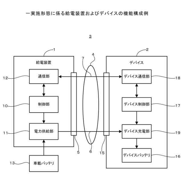 一実施形態に係る給電装置およびデバイスの機能構成例を示すブロック図である。