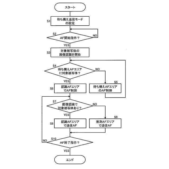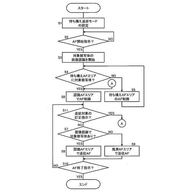 実施形態に1のデジタルカメラにおける待ち構え追従モードの動作を例示するフローチャート
