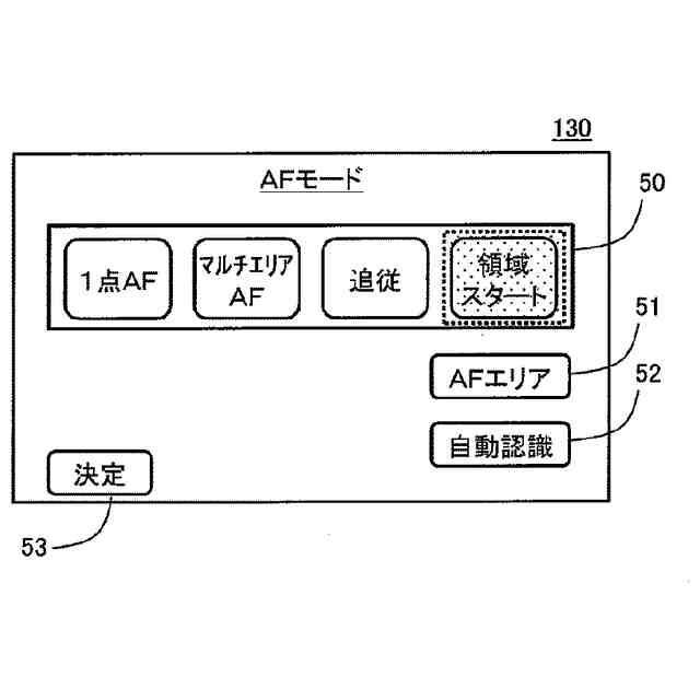 デジタルカメラにおける待ち構えAFエリアの設定画面の表示例を示す図