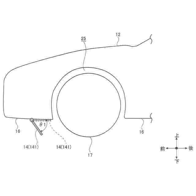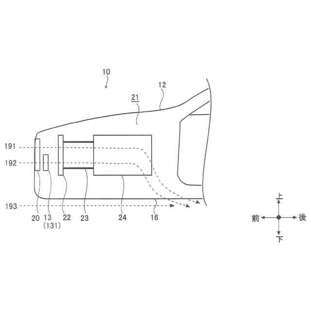 具体的には、アクティブグリルシャッタを閉状態にすると、開状態においてはエンジンルームに進入していた走行風の一部が、車体下面の下方に回り込むことになることから、フロントタイヤの接地圧が増加する。そのようになると、車両運転時のハンドリングが不必要に変化する課題があった。