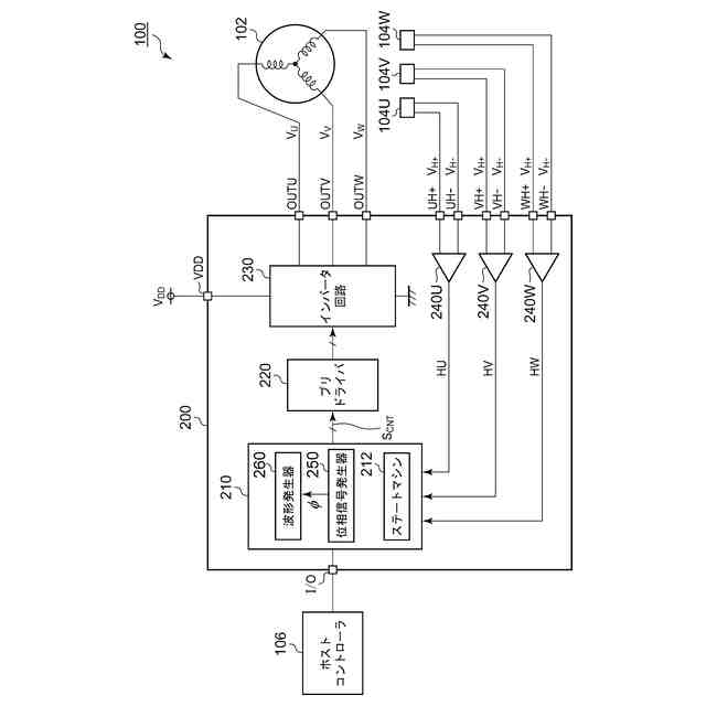 【解決手段】位相信号発生器250は、U相ホール信号、V相ホール信号、W相ホール信号のエッジに応答して、60度刻みで変化する基準位相信号θを生成する。また、現在位相信号φに、モータの回転数に応じた角速度信号ωを累積的に加算する。U相ホール信号、V相ホール信号、W相ホール信号のエッジが発生したときに、現在位相信号φと基準位相信号θとの誤差が所定の範囲に含まれない場合に、現在位相信号φを、基準位相信号θにリセットする。