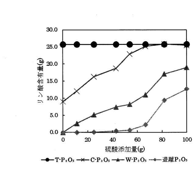 従来の上記技術は下水汚泥焼却灰等に多量の硫酸等を加えてリン成分を溶出させ、このリン酸液を分離回収して利用する溶液処理の方法である。このような従来の溶液処理は、溶液量が多く、しかも遊離リン酸量が多いため、これをそのまま乾燥すると粒子どうしが固着してしまう問題がある。さらに、従来の上記溶液処理では、硫酸等による溶出工程の後に、溶出させたリン酸液を固液分離して回収し、これに石灰等を加えてリン酸肥料を製造している。このため肥料化に手間がかかる。さらに濾過設備などの負担が大きく、ランニングコストが嵩むと云う問題があった。