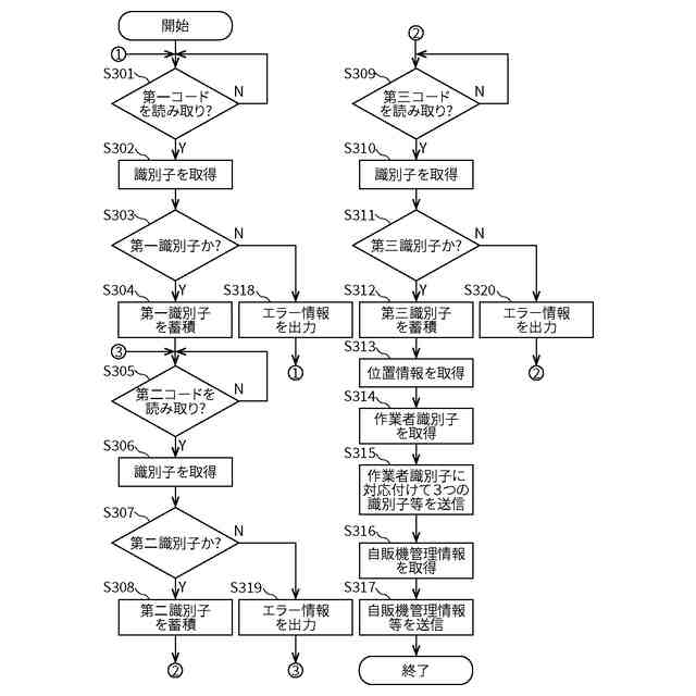 前記通信端末識別子取得部が取得した情報が通信端末識別子であるか否かを判断し、当該情報が通信端末識別子でない場合には、エラー情報を取得し、その後に、前記決済端末識別子取得部が取得した情報が決済端末識別子であるか否かを判断し、当該情報が決済端末識別子でない場合には、エラー情報を取得し、その後に、前記自販機識別子取得部が取得した情報が自販機識別子であるか否かを判断し、当該情報が自販機識別子でない場合には、エラー情報を取得し、