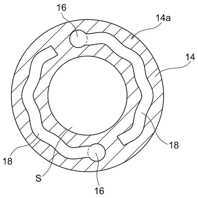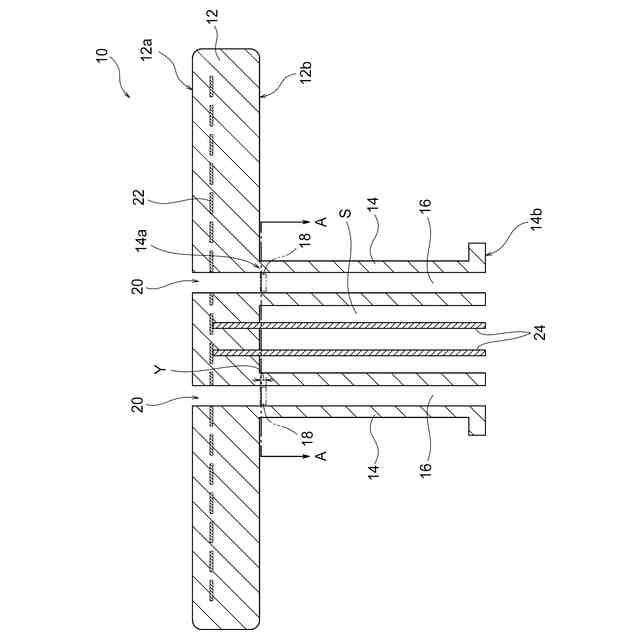 高い成膜品質を確保するため、セラミックヒータには、ウェハが載置される面内における温度差が小さいこと(すなわち均熱性)が求められている。とりわけ、近年のプロセスの微細化及び高集積化に伴い、セラミックヒータにはより一層の均熱性が求められている。しかしながら、図17に模式的に示されるように、従来のシャフト付きセラミックヒータ110では、セラミックプレート112の全体から輻射や対流による熱の移動(矢印B参照)が生じるのに加えて、セラミックプレート112の裏面に取り付けられたセラミックシャフト114から設備側への熱伝導による熱の移動が発生する(矢印A参照)。その結果、セラミックヒータ110のシャフト部分の熱伝達が大きくなり、セラミックプレート112の中心部の温度が他の部位よりも低くなりやすく、結果として均熱性が損なわれやすい。