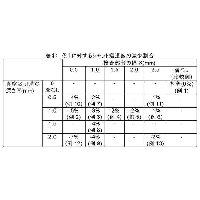 例1~6で作製したセラミックヒータについて測定された、シャフト端放熱量の減少割合とシャフト端温度の減少割合を、接合部分の幅との関係において示すグラフである。