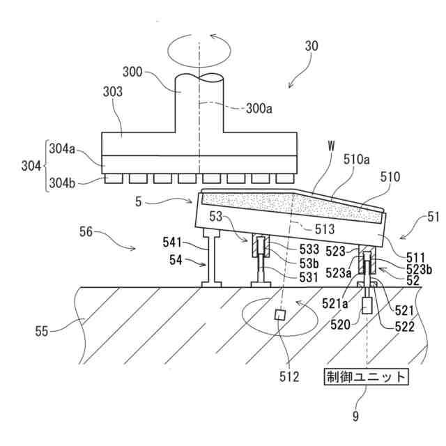 該保持テーブルの下方に配設され、固定支持部と少なくとも2つの可動支持部とを有し、該可動支持部によって該保持テーブルの傾きを調整する傾き調整ユニットと、