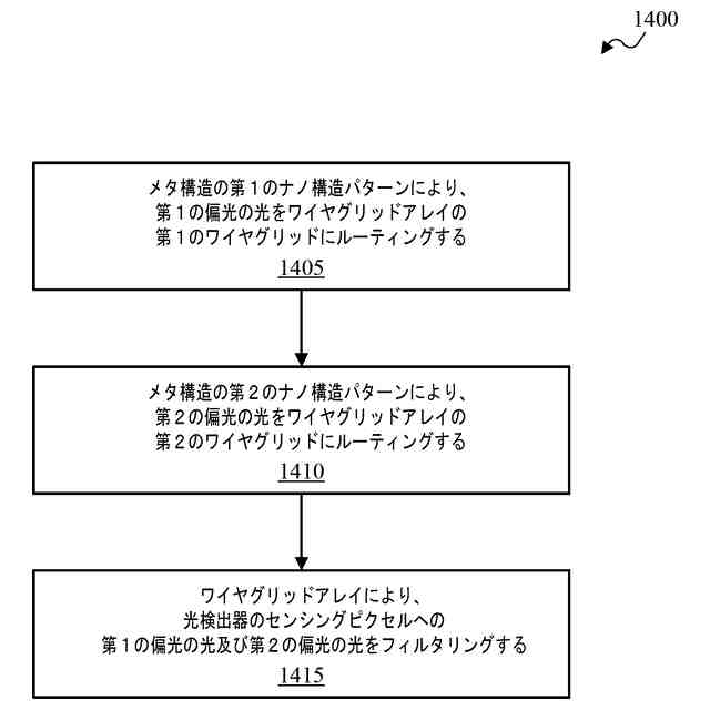 【解決手段】 1つ以上の例において、システム、デバイス、及び方法は、第1の偏光の光をワイヤグリッドアレイの第1のワイヤグリッドにルーティングし、第1の偏光とは異なる第2の偏光の光をワイヤグリッドアレイの第2のワイヤグリッドにルーティングし、ワイヤグリッドアレイにより、光検出器のセンサピクセルへの第1の偏光の光及び第2の偏光の光をフィルタリングする、ことを含む。