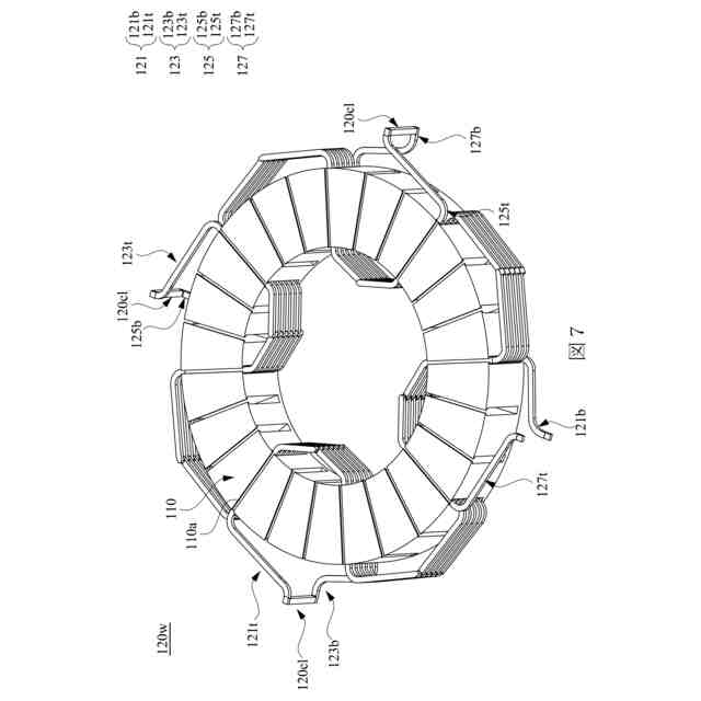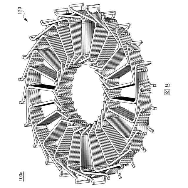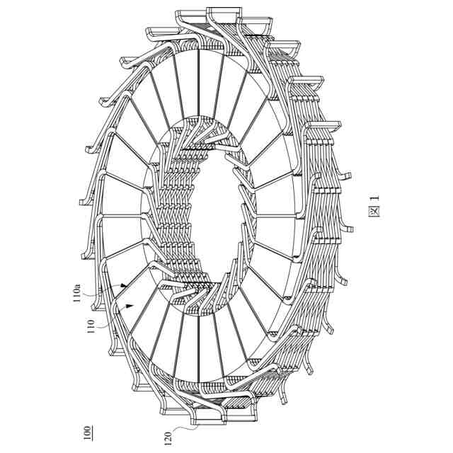 モータは、電気エネルギーを機械エネルギーに変換するための部品であり、すでに日常生活に広く適用されている。従来、分布巻線の軸方向モータが採用されており、導体は、固定子スロット内に対応する磁極位置に従って周方向のスロットに沿って蛇行して設けられる。導体の配列がスロット内の空間を効果的に満たしてスロット充填率(slot fill factor)を向上させるために、隣接するスロットの2本の導体は、次の磁極に進む前に突出部で位置を軸方向に上下に入れ替える必要がある。このように、各導体は曲げ成形後に更に完全な巻線に組み立てることができず、巻線全体は、複雑な成形形態及び設備を採用して製作する必要がある。