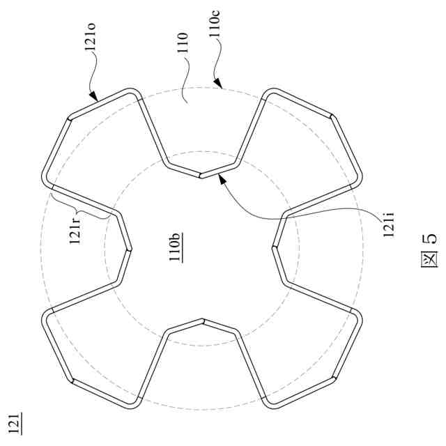 本発明のいくつかの実施例によると、前記複数本の導体の各々は、前記軸方向磁束モータの固定子構造の軸心を囲む内部空間に位置する複数の内径突出部を含み、且つ前記第2本の導体の前記内径突出部の各々の半部は、前記軸方向において前記第1本の導体の隣接する前記内径突出部の半部の上方に位置する。