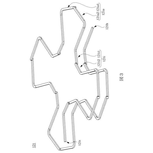 本発明のいくつかの実施例によると、前記複数本の導体の各々は、前記軸方向磁束モータの固定子構造の軸心を囲む内部空間に位置する複数の内径突出部を含み、且つ前記内径突出部の各々の2つの半部の前記軸方向での位置同士は、1層分の差異を有する。