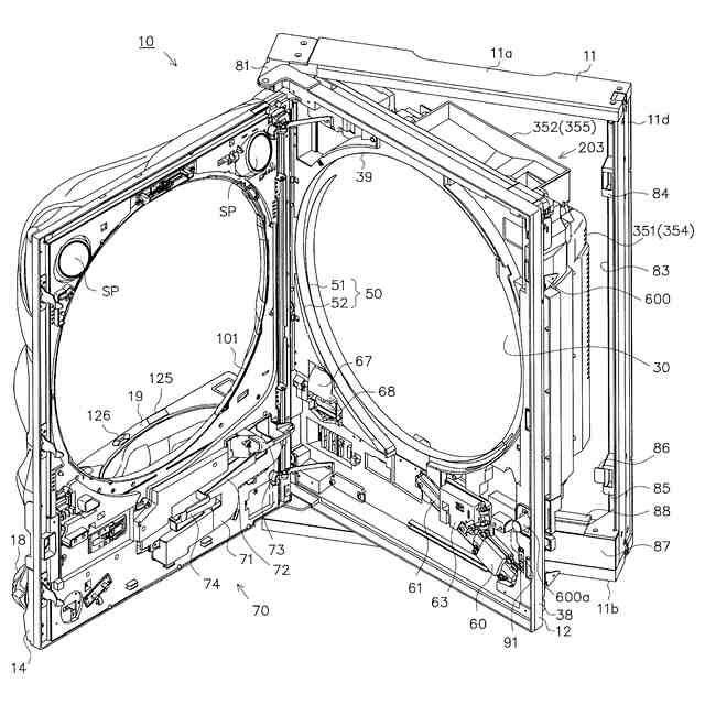 内枠及び裏パックユニット等を開放した状態を示す斜視図である。