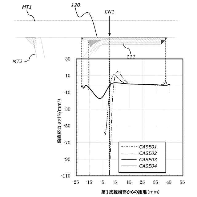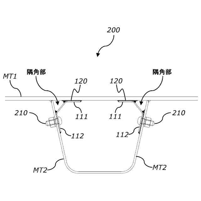 前記第1母材と前記第1平板、及び/又は前記第2母材と前記第2平板が、ボルト接合された、