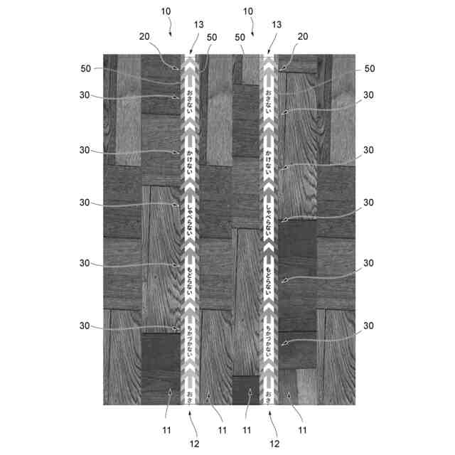学校やオフィスビルといった各種施設の館内、とくに廊下や通路などにおいて、地震や火事といった非常時下における避難経路をわかりやすく表示してあることは、平常心が失われがちな状況下にあっても人々を的確かつ円滑に誘導するためには重要である。このような観点から提案されているものとしては、たとえば、裏面に面ファスナーを備えてカーペットに着脱自在に張り付けることができるようにしたカーペット用誘導表示具がある(特許文献1参照)。