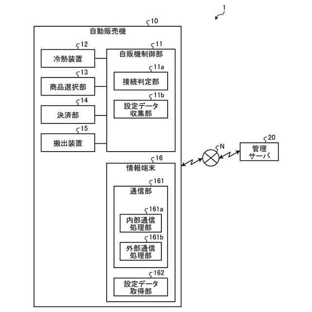 また本発明は、上記自動販売機システムにおいて、前記情報端末は、前記自販機制御部から前記整合完了通知を入力することを条件として、該自販機制御部に設定データ収集指示を再度出力し、該自販機制御部から設定データが送出された場合に、前記管理サーバに対して該設定データ及び前記構成機器が整合完了である旨を送出することを特徴とする。