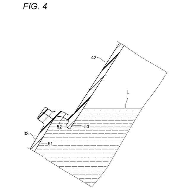 車両の走行時にリザーブタンク20が所定の角度傾いた場合における冷却液の液面Lの様子を示す。