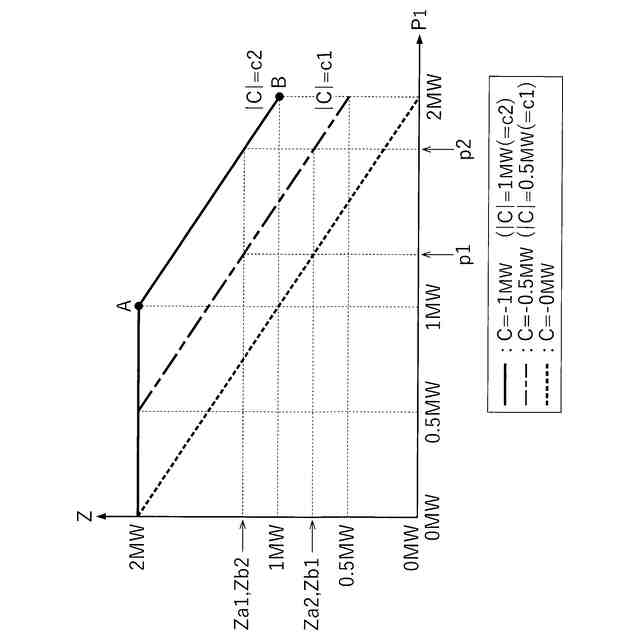 第1電力値と第2電力値と動作制限値との関係を表すグラフである。