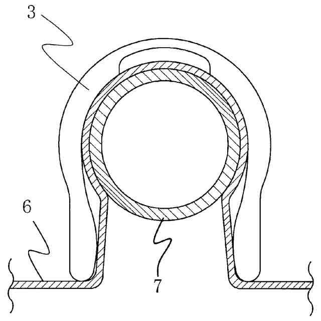 下記特許文献1に示すフィルム取付具はその一例であり、この発明は、円筒の周壁の一部を軸方向に切り欠いて開口させた開口部を形成した形状であり、開口部よりシート状物及びパイプ部材を導入して、本体部の内周面がシート状物を挟んでパイプ部材に嵌着するシート止め具を提供するものである。