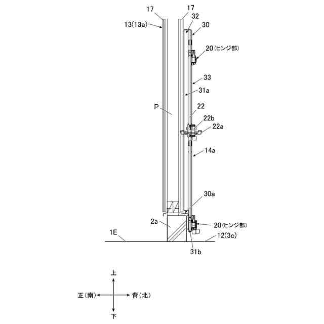 ところで、壁である門袖は、住宅の壁と同様に基礎上に構築される場合があり、その場合、門扉を開閉させるためのヒンジ部を、基礎の立ち上がり部よりも上方の高さ位置に設ける必要がある。ところが、ヒンジ部が高い位置に設けられることになると、門扉の下端部の高さ位置も高くしなければならない場合がある。そして、このように門扉の下端部の高さ位置が高くなると、地面と門扉の下端部との間に隙間が形成されてしまって好ましくない。また、高い位置に設けられたヒンジ部によって門扉を支持することで、門扉の開閉に支障を来すことも十分に考えられるため、たとえ門袖を構成する壁が基礎上に構築された場合であっても、ヒンジ部の高さ位置を下げて、門扉を支障なく開閉できるようにしたいという要望があった。また、このような門扉に限らず、屋外設置物14aを、基礎上に構築される壁に取り付ける場合には、その下端部の高さ位置が高くなると、地面と屋外設置物の下端部との間に隙間が形成されてしまって好ましくない場合がある。