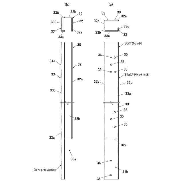前記ブラケット本体31aのうち、側面視において前記基礎2aの厚み方向一側面よりも外方に突出している部位の下端部から下方に延出して設けられた下方延出部31bと、を有しており、