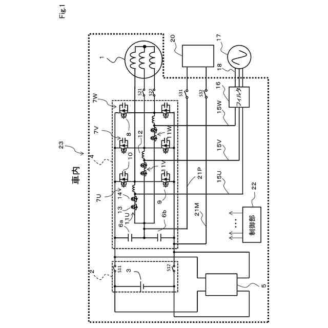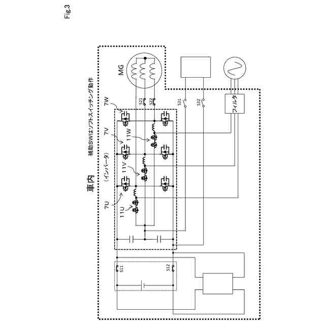 特許文献1~3には、上記の問題に対して、電気自動車は充電時は停止しており、MGやインバータは使用しないことに着眼して、インバータのパワー素子や、MGの巻線、リアクトルを利用して充電用の電力変換器として共用することで、体格、コストを抑制する技術が開示されている。