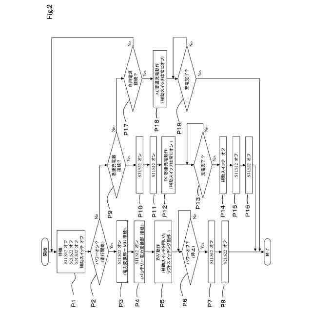 また、バッテリを車外の直流急速充電器により充電する際には、充電器用リレーをオンにすると共に補助スイッチを常時オンにすれば、電力変換部を昇圧コンバータモードで動作させることができる。これにより、バッテリを適切な電圧で急速充電できる。そして、この動作にはモータの巻線を使用しないので、ロータの回転を抑制するための制御も不要になる。