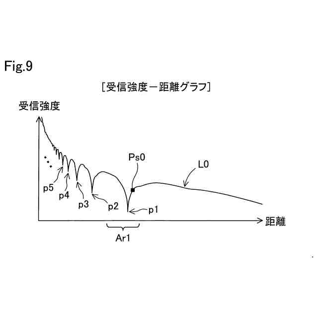 生成された各前記RVマップにおけるピークについて、それぞれ該ピークの前記受信強度および該ピークの前記距離ビンが示す距離を、受信強度-距離グラフにプロットすることにより、前記特性曲線を特定する特性曲線特定部(114)と、