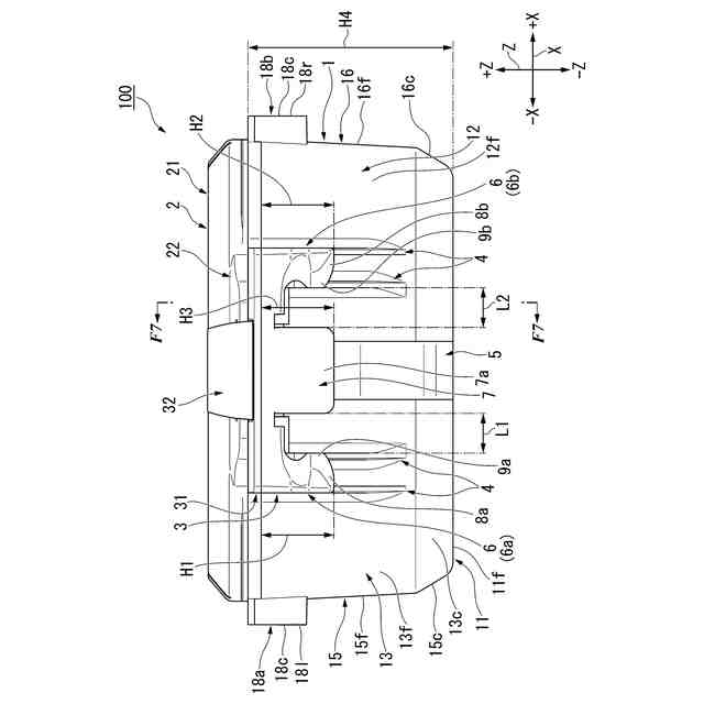 前記第1爪部と前記第2爪部との間の前記水平方向の長さは、前記側面と前記第1爪部との間の前記垂直方向の長さより大きい、