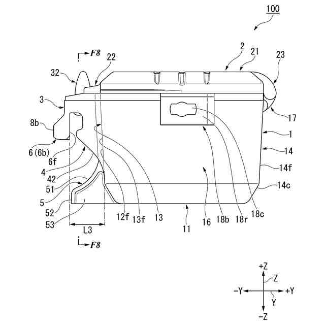 (1)本発明に係るエサ箱の態様1は、釣り用のエサ箱であって、下方に形成された底面と前記底面を囲む側面と前記側面の上端に形成された開口とを有する箱状の本体部と、前記側面に設けられた掛止部と、を備え、前記掛止部は、前記側面から前記側面に対する垂直方向に離間して上下方向に延びており、前記上下方向および前記垂直方向と交差する水平方向に離間している一対の第1爪部と、前記側面から前記垂直方向に離間して前記上下方向に延びており、前記一対の第1爪部の間に設けられて、前記第1爪部と前記水平方向に離間している第2爪部と、を有しており、前記第1爪部と前記第2爪部との間の前記水平方向の長さは、前記側面と前記第1爪部との間の前記垂直方向の長さより大きいことを特徴としている。