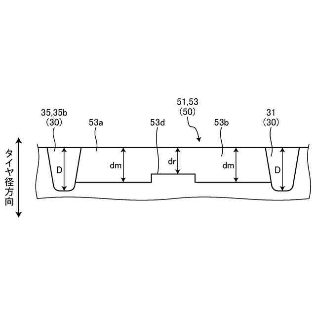 【解決手段】ショルダー主溝35とセンター主溝31との間にはタイヤ周方向に延びるストレート溝40が配置され、ショルダー主溝35とセンター主溝31との間にはストレート溝40に交差するセカンド幅方向溝51が配置され、セカンド幅方向溝51は幅広部52aと幅狭部52bとを有し、ショルダー主溝35に連通する幅狭部52bの溝深さがショルダー主溝35と同じ深さで、ストレート溝40に連通する幅狭部52bの溝深さがストレート溝40と同じ深さになっており、ショルダー主溝35とストレート溝40との間には、タイヤ周方向に隣り合うセカンド幅方向溝51同士の間に亘ってタイヤ周方向に延びると共に溝深さがショルダー主溝35及びストレート溝40の溝深さよりも浅い周方向細溝60が配置される。