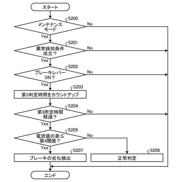 シニアカーや、電動車いすなどの車両の制動は、一般的に、アクセルペダルの踏み込み量が小さくなった場合に発生する回生ブレーキによって行われる。しかしながら、回生ブレーキのみでは、制動力が不足する場合がある。そのため、車輪に機械式ブレーキを設けることが考えられる。機械式ブレーキが設けられた車両は、機械式ブレーキに異常が発生した場合に、機械式ブレーキの異常を検出することが望ましい。これにより、機械式ブレーキの消耗部品を目視せずに、機械式ブレーキの故障、および、劣化などの異常を検出することができる。