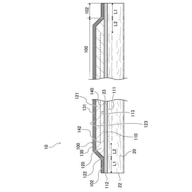 前記布は、前記中塗層の端部からセットバックされて埋設されている、